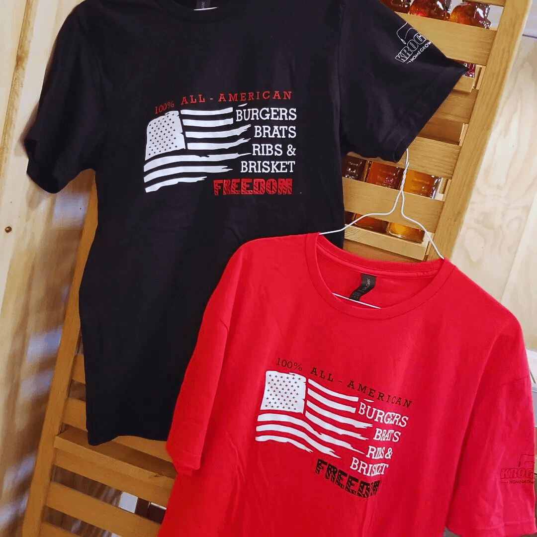 Grab one of our 100% All-American shirts to sport your love of all things meat & 'merica and KHM!
